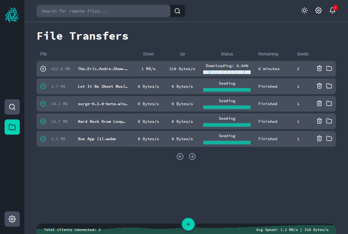 Surge is a p2p filesharing app designed to utilize blockchain technologies to enable 100% anonymous file transfers. Surge is end-to-end encrypted, decentralized and open source.