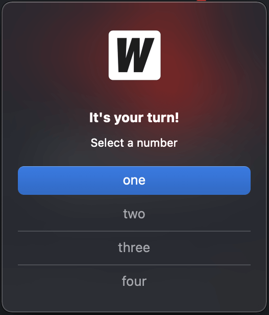 o botão com "três" é mostrado na parte inferior do diálogo. Quando escape é pressionado, o valor "três" é retornado: