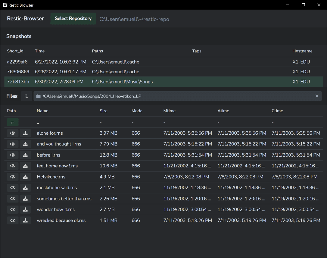 社区案例展示Restic Browser版本:下个版本 🚧Restic BrowserRestic-Browser - 一个简单的、跨平台的 restic 备份 GUI ,用于浏览和恢复 restic 存储库。